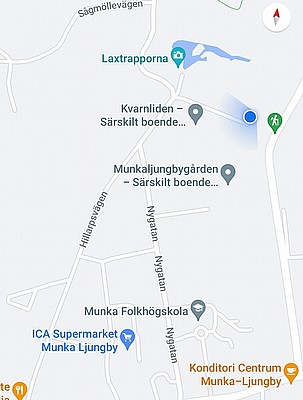 Sportstugan hittar ni längst ner på Hillarpsvägen i Munka-Ljungby, se bild. Den blå pricken är sportstugans placering.